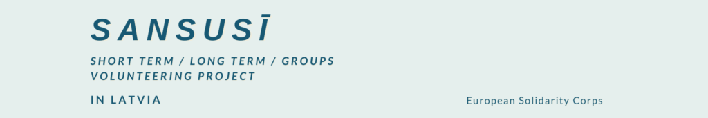 The project is co-funded by the European Union under the European Solidarity Corps programme. Quality Labels No. 2022-1-LV02-ESC50-QLA-000112752 and No. 2020-1-LV02-ESC52-003470. Project nr. 2025-1-LV02-ESC51-VTJ-000346775. Financing is governed by Jaunatnes Starptautisko Projektu aģentūra in Latvia.